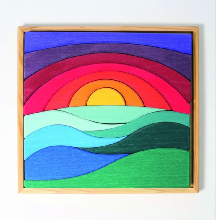 グリムス社のおもちゃは見た人がはっとするほど美しい色彩が特徴です。特に組み立てて完成させる遊びにおいては、カラフルな色彩で遊びの幅が広がっていきます。
