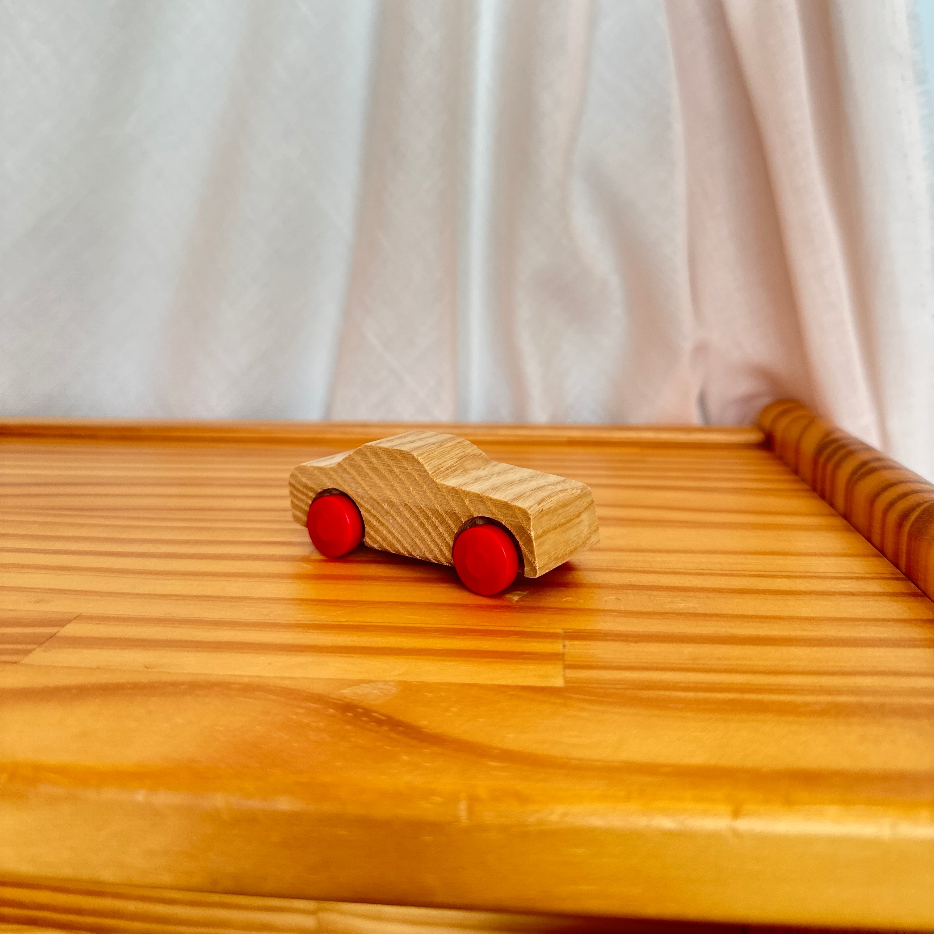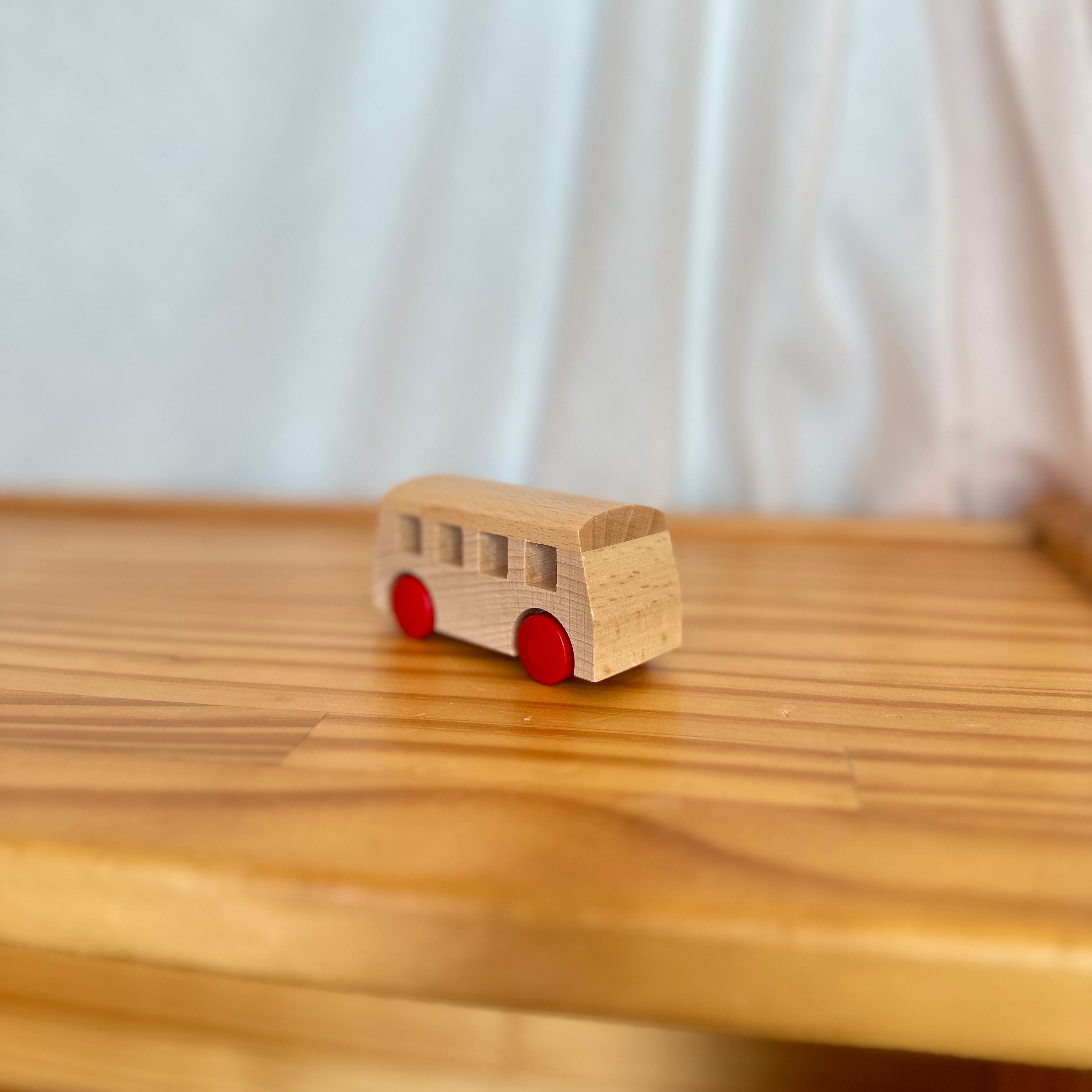 木製のミニカーは、小さなお子様の手にも扱いやすい大きさで、おでかけのおともにもピッタリ。