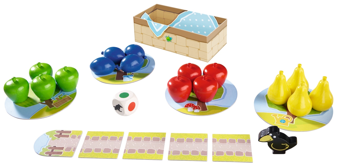 カラスがゴールする前に、みんなで全ての果物を摘み取ったら、みんなの勝ち!という協力ゲームです。