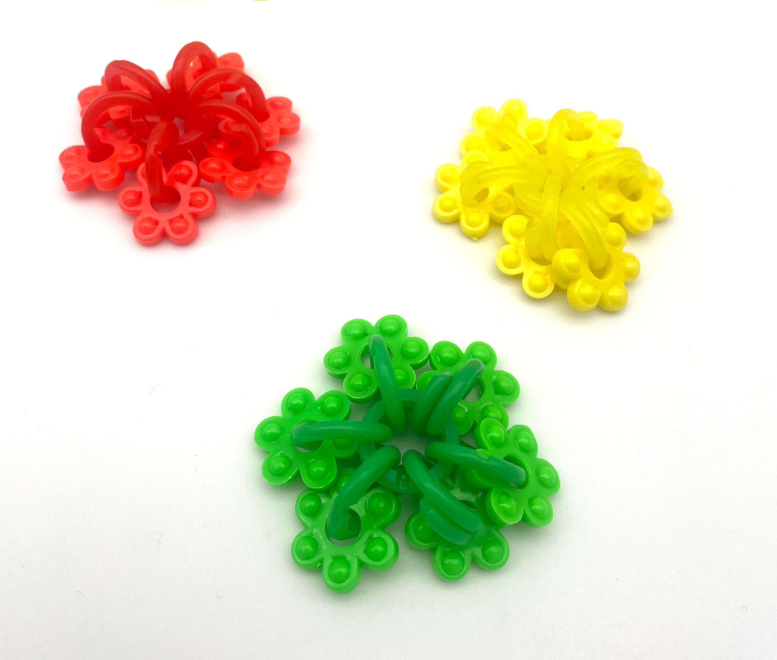 例えば、白の花はじきは白米、赤い花はじきを緑のチェーンリングで球体につなげれば、トマトやいちご、ピーマンにも見えます。