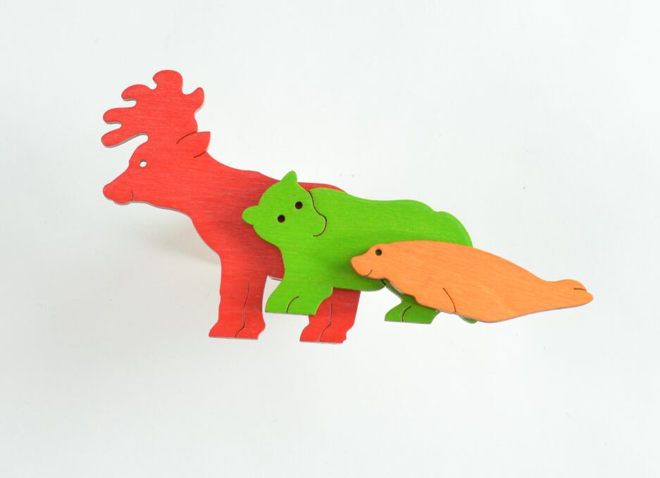 それぞれの層が1枚の木板でできているので、小さなお子さんでも遊びやすいパズルです。
